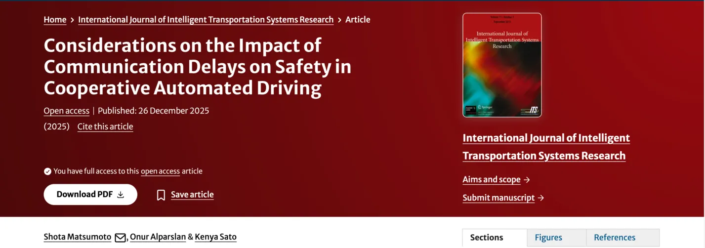 International Journal of Intelligent Transportation Systems Research 論文掲載